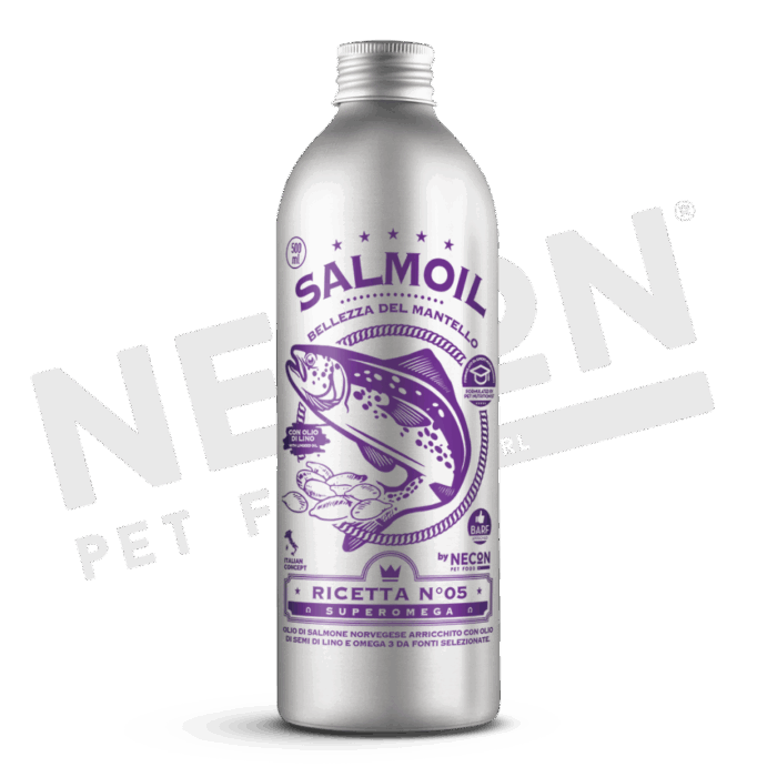 La sinergia delle proprietà benefiche delle varie fonti di omega-3 presenti in Salmoil Ricetta 5 (purissimo olio di salmone norvegese, krill, olio di lino e alga Schizochytrium) permette di mantenere cute e pelo in salute.